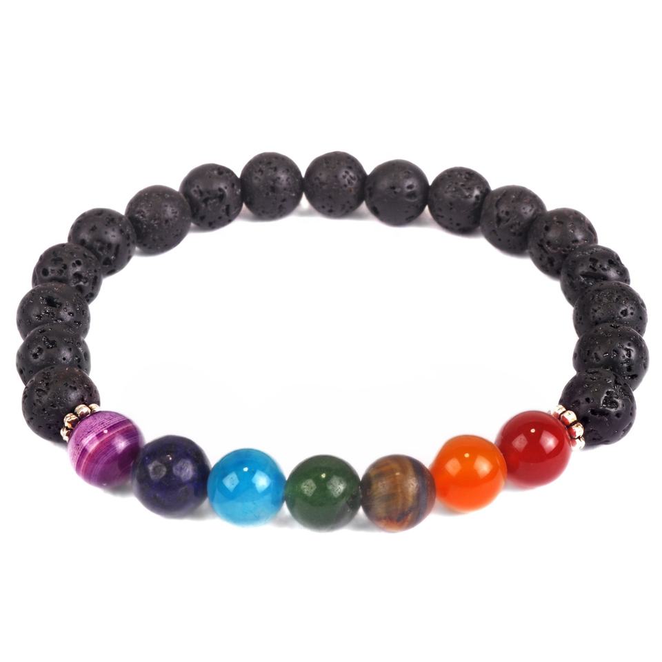 Adjustable Elastic Men's/Women's Black Matt Lava Stone Beaded Bracelet 7-Color Chakra for Meditation Yoga & Healing-Yoga Jewelry