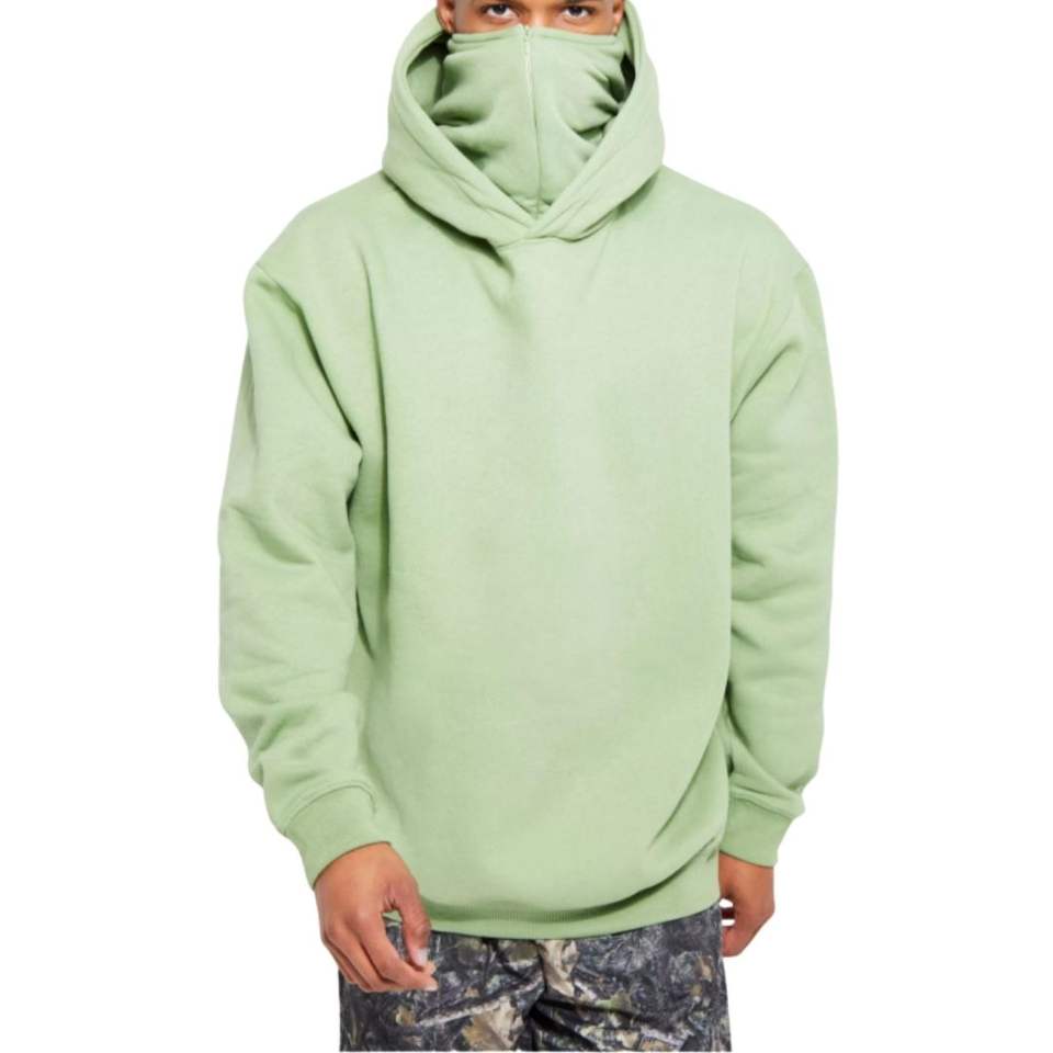 Men Women Black Heavyweight Hip Hop Zip Up Balaclava Hoodies Breathable Oversized Cotton Fleece Ninja Hoodie