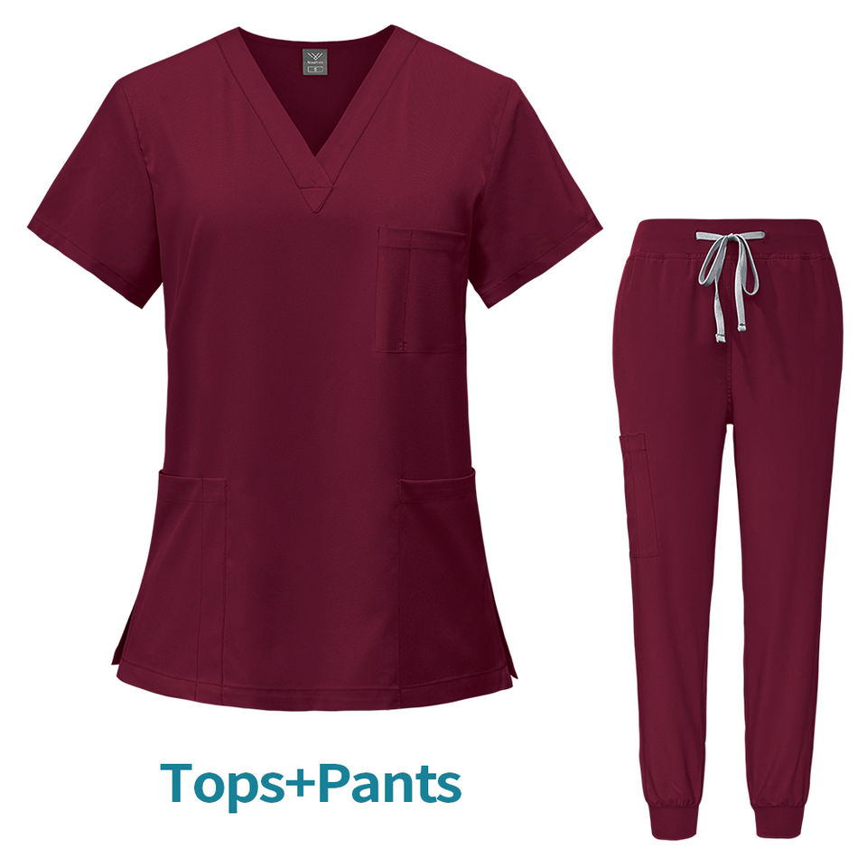 Men Women Custom logo v Neck Nurse Uniforms Sets Doctor Nurses Dental Hospital Uniform Sets Top Jogger Pants Scrubs Suits