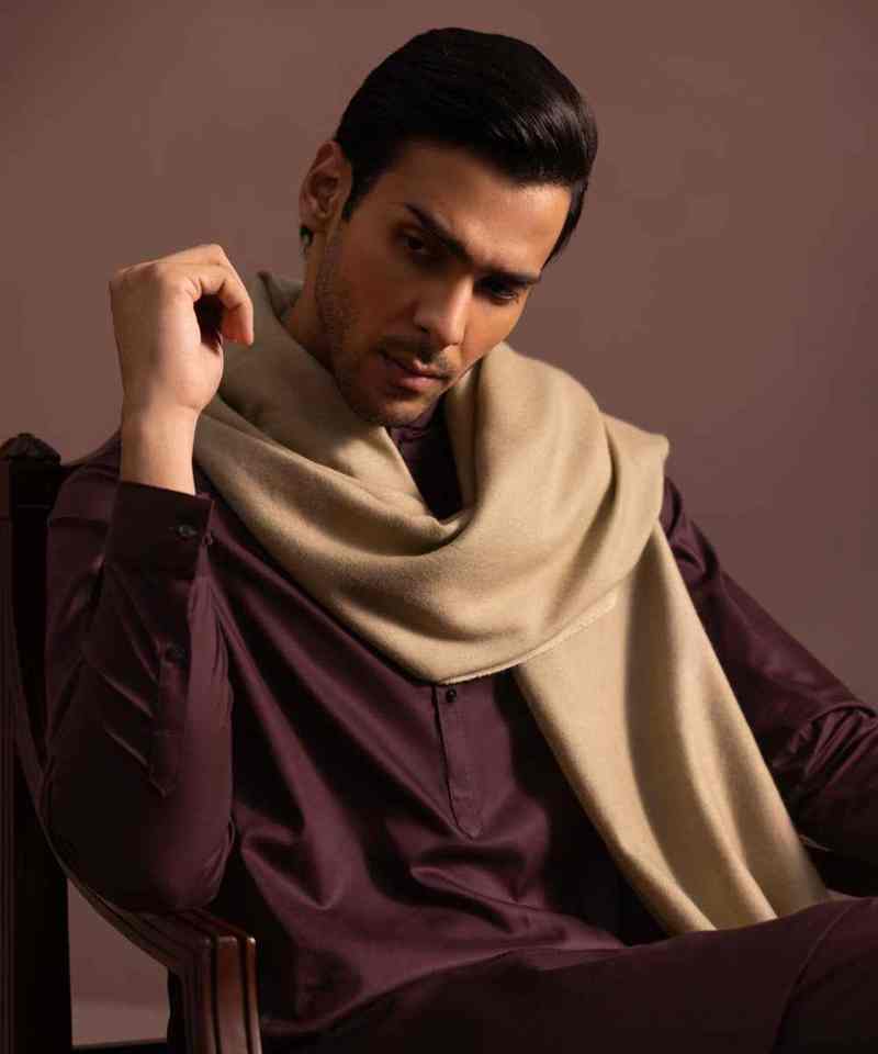Men Wool Shawl Winter Warm Breathable Soft Traditional Elegant Solid Color Wrap 300g