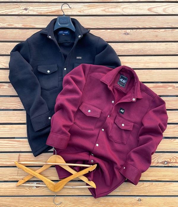 Men Woven Cotton Shacket Overshirt Double Chest Pocket Button Front Vintage Casual Jacket Long Sleeve Layering Wear Winter
