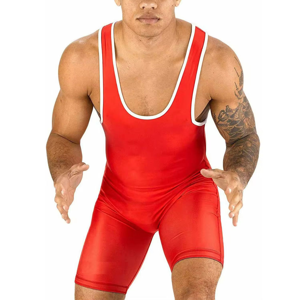 Men Wrestling Singlet Suit Bodywear Uniform for Men and Youth Powerlifting and Simple Color