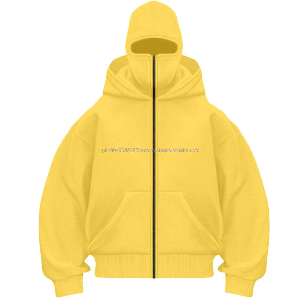 Men Zip-Up Balaclava Hoodie 100% Cotton Warm Fleece Jacket with Embroidered Mask Casual Streetwear Custom Logo OEM