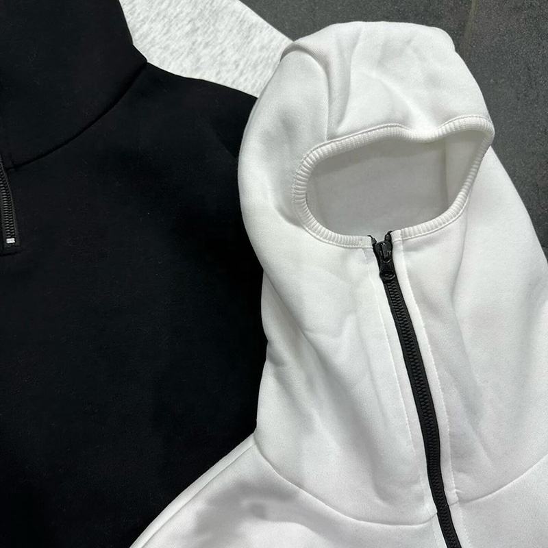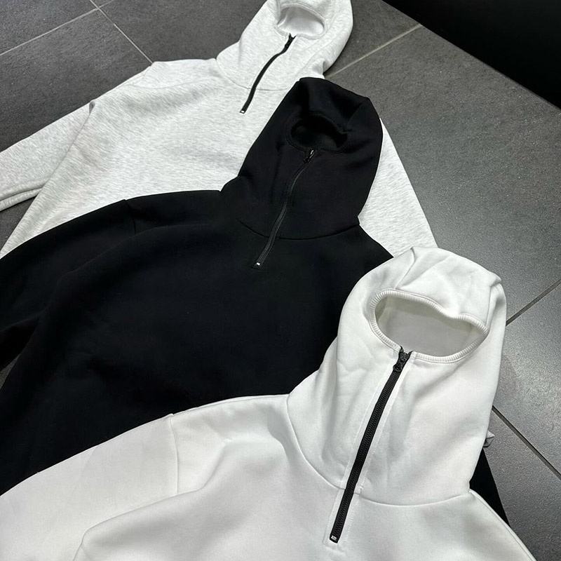 Men Zip up Custom French Terry Plain Men's Integrated Breathable V2 Ninja Half Zipper Balaclava Sweatshirts Hoodies