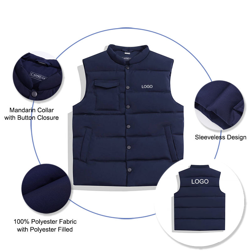 Men and Women Winter Vest With Custom Logo Outdoor Wearing Puffer Waistcoat Unisex Mandarin Collar Vest Coat