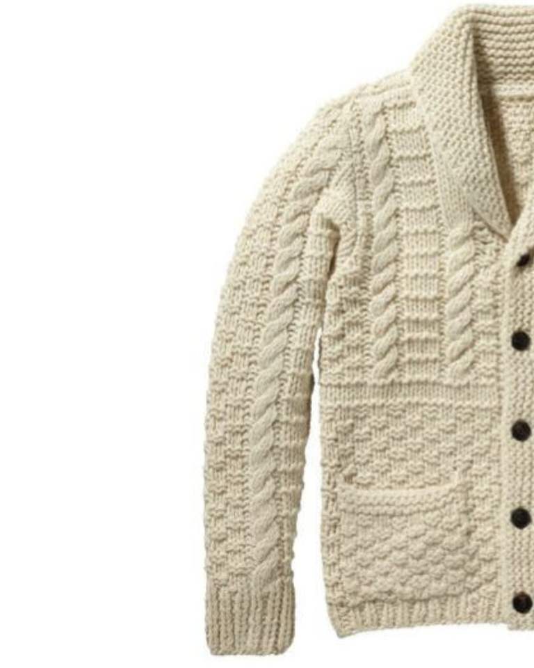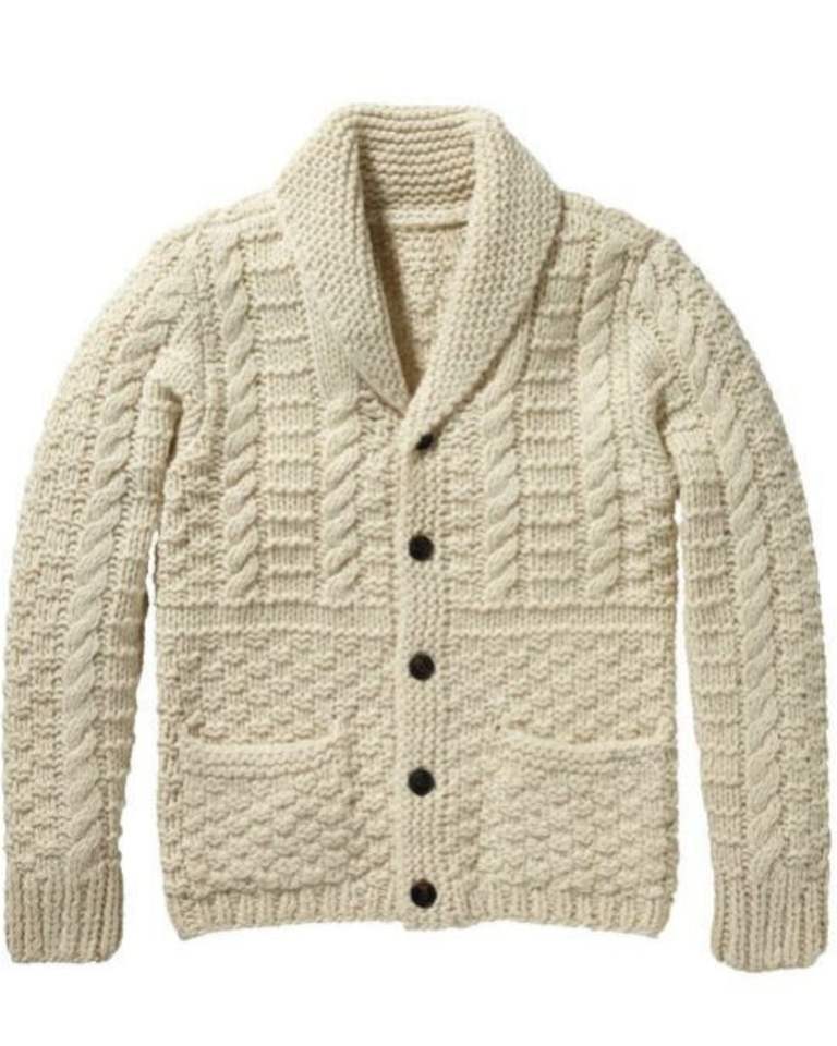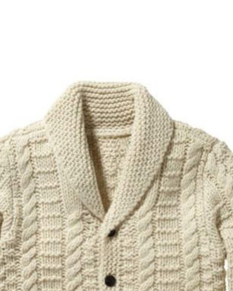 Men and women Cable Knit Cardigan Sweater Button Front Shawl Collar Winter Warm Textured Cotton Knitwear White Casual Style
