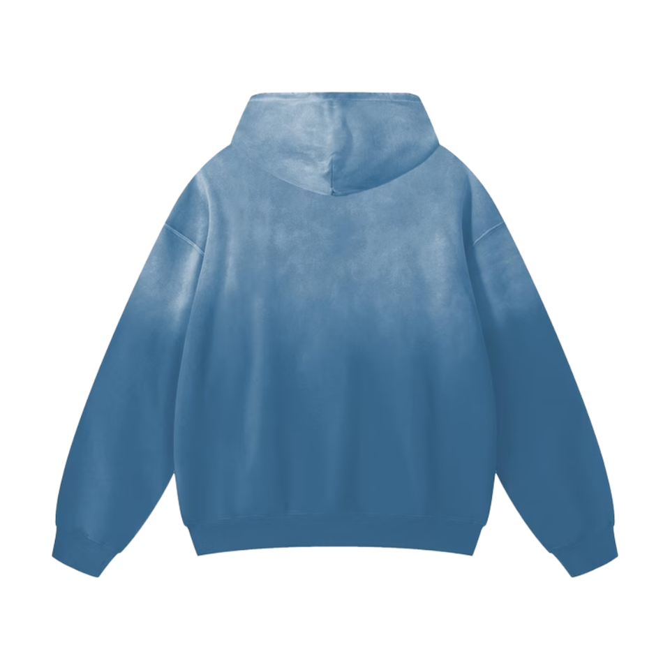 Men distressed hoodie gradient washed blue oversized pullover fleece cotton hooded sweatshirt plain streetwear custom logo Hoodi