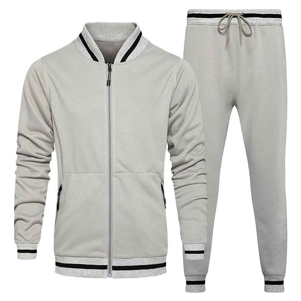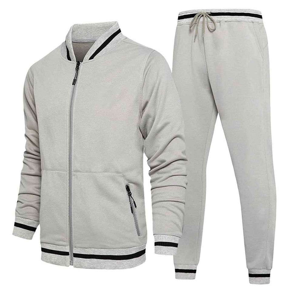 Men's Winter Solid Eco-Friendly Lightweight Two-Piece Jogging Suit Set for Fitness & Daily Wear Warm Fleece Lining 100% Cotton