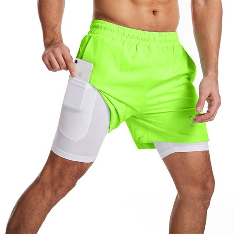 Men's 100% Cotton 2-in-1 Double-Deck Running Shorts Quick Dry Sport Gym Fitness Jogging Workout Pants Eco-Friendly OEM Service