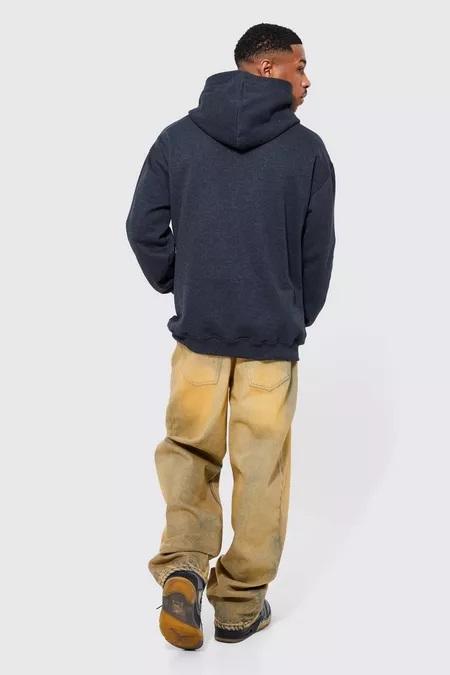 Men's 100% Cotton Acid Wash Pullover Hoodie Breathable Long Sleeve Graphic Printed Oversize Wholesale Black Fleece