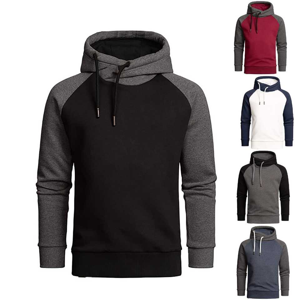 Men's 100% Cotton Casual Sports Pullover Fleece Hoodie Solid Pattern Black Long Sleeve Sweatshirt Pockets Winter Season Style