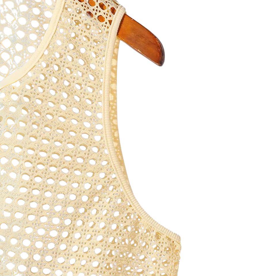 Men's 100% Cotton Crewneck Sleeveless Tank Tops Men's Sexy Lace Mesh Vest Casual See through Knitted Design