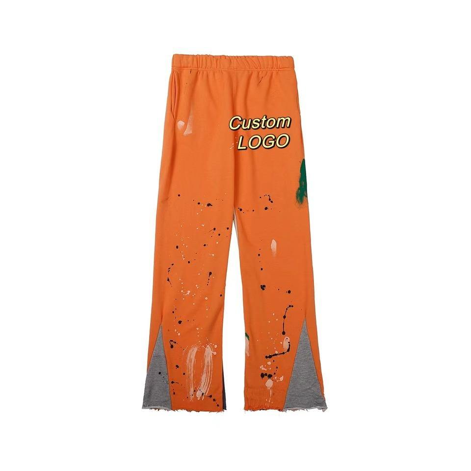 Men's 100% Cotton Flare Sweatpants Custom 300-400 Gsm High Waist Sun Faded Acid Wash for Raw Hem Cut Edge Casual Active