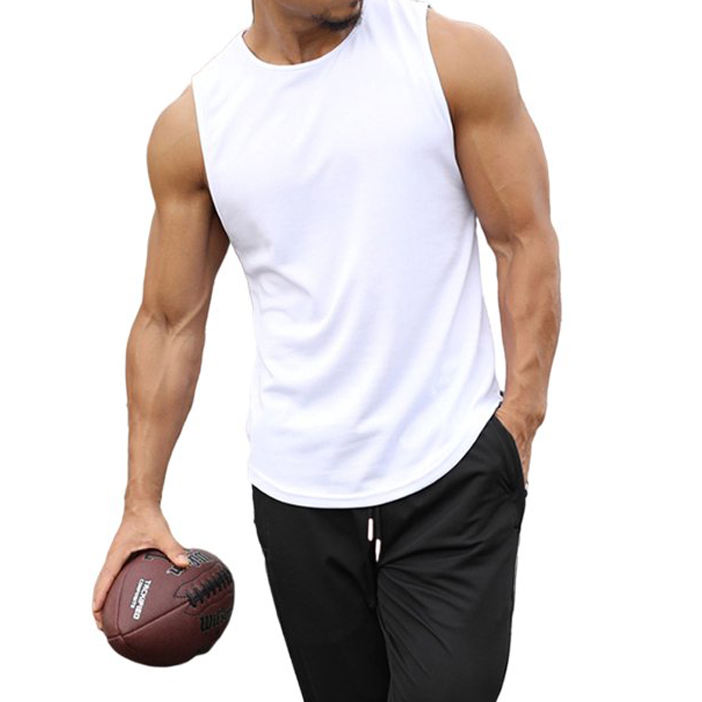 Men's 100% Cotton Gym Tank Top High Quality Breathable Sleeveless Casual Muscle Print Embroidered Knitted Hood Solid Color Badge
