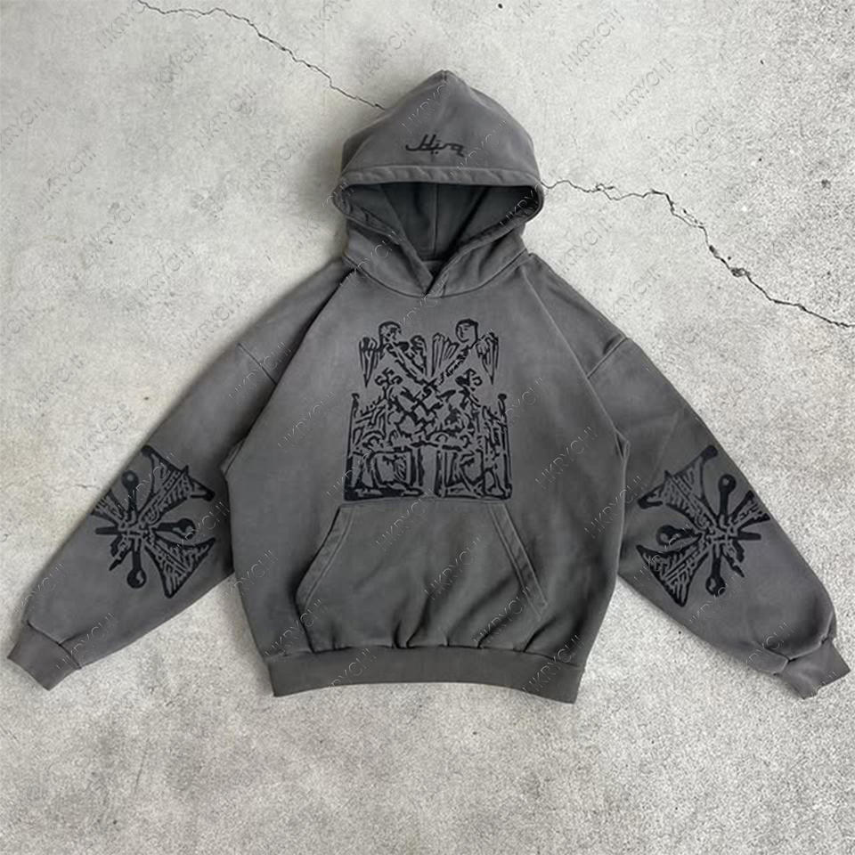 Men's 100% Cotton Heavyweight Fleece Zipper-Up Hoodie Oversized Winter Waterproof Streetwear Rhinestones Custom Logo 3D Printed