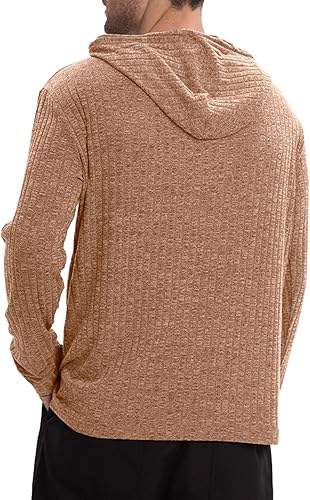 Men's 100% Cotton Hooded Pullover Sweatshirt Henley Collar Long Sleeve Loose Solid T-Shirt Winter Front Logo Cross-Border Design