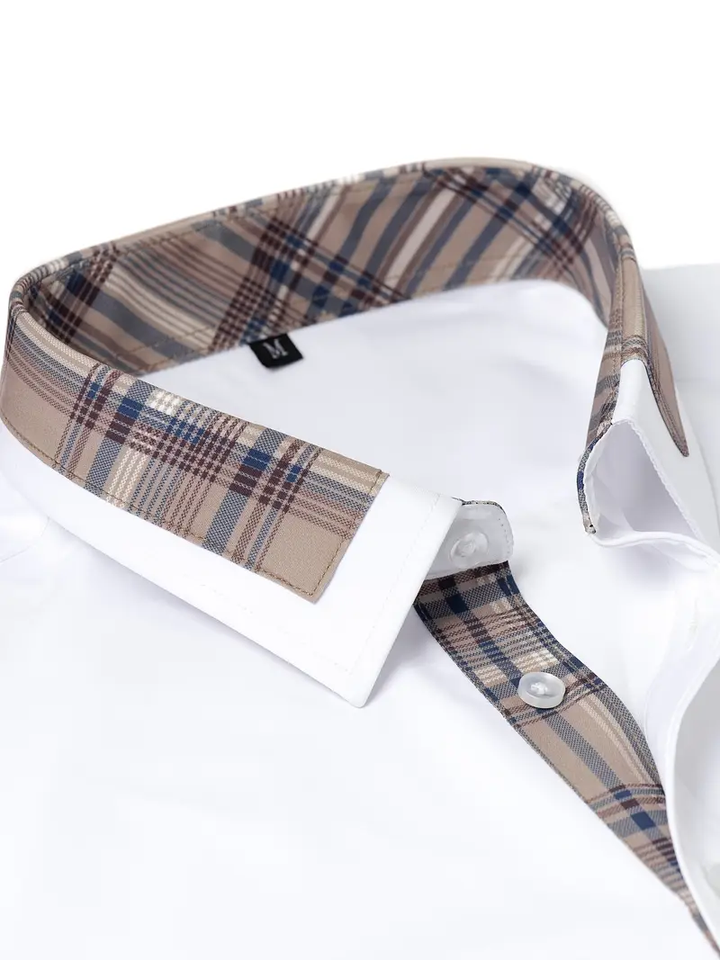 Men's Casual Cotton Shirt with Wrinkle-Free Set-Up Suit Collar Available in 3 Colors
