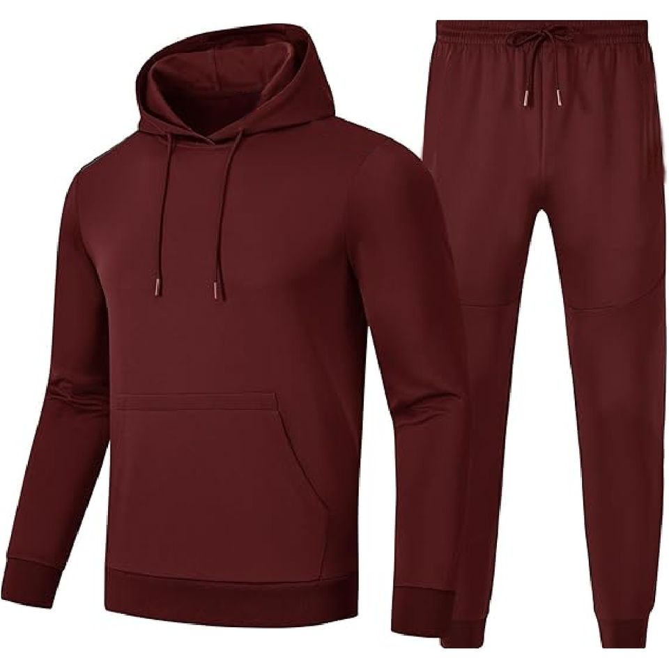 Men's 100% Cotton Streetwear Two-Piece Tracksuit Printed Jogger Flare Pants Sets with Solid Pattern for Winter