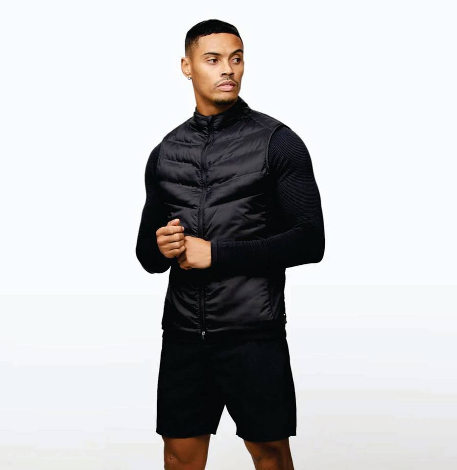 Men's 100% Polyester Gilet Sweat-Proof Funnel Neck Full Zip Lightweight Sleeveless Casual Style Winter Black Fundamental Gilet