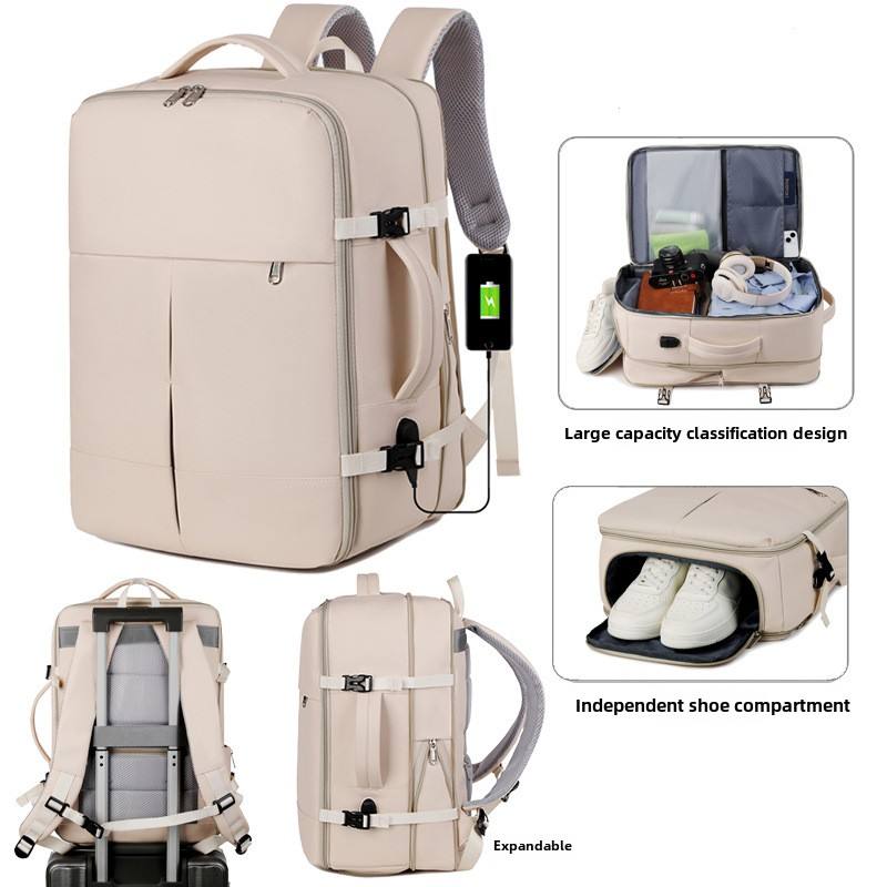 Men's 16-Inch Multifunctional Waterproof Laptop Backpack Cross-Border New Business Expandable Oxford Polyester Zipper for