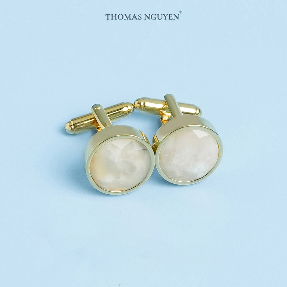 Men's 18K Gold-Plated Cufflinks with Fengshui Gemstone Faceted White Agate MSDATRG005 Tinh Vu Collection From Vietnam