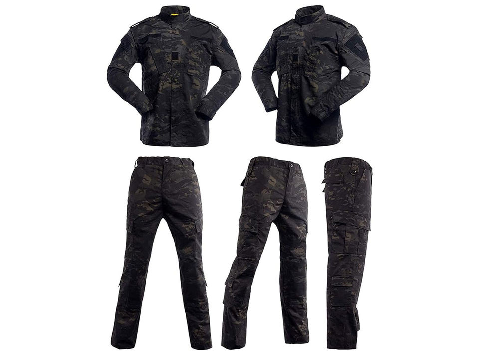Men's 2-PC Tactical ACU Fleece Uniform Satin Woven Embossed Hooded Jacket Pants Waterproof Autumn Bomber Jacket Canvas Jersey