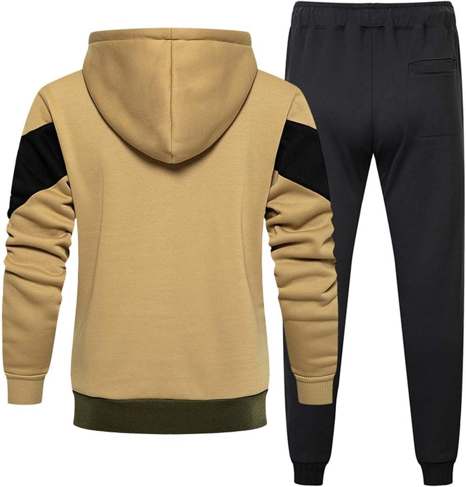Men's 2-Piece Color Block Sweatsuit Long Sleeve Hoodie and Joggers Set Winter Activewear Outfits