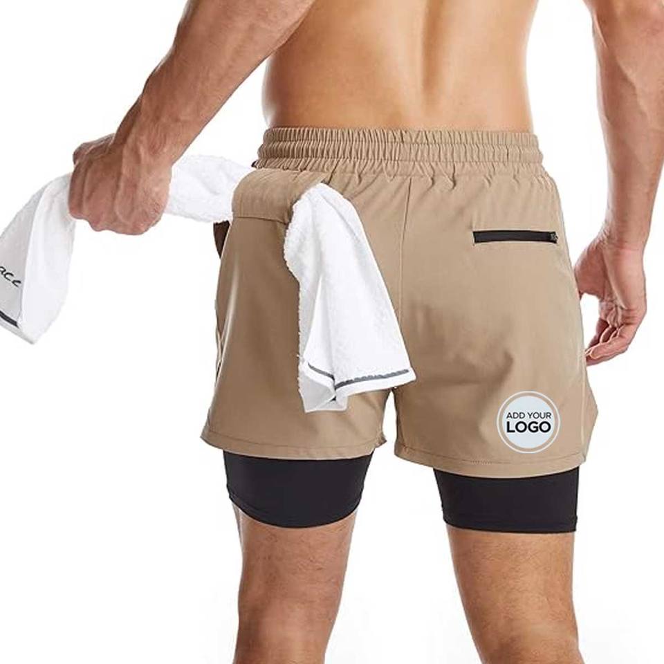Men's 2-in-1 Athletic Quick Dry 7\" Running Shorts with Zipper Pocket Solid Pattern Eco-Friendly Gym & Athletics Shorts