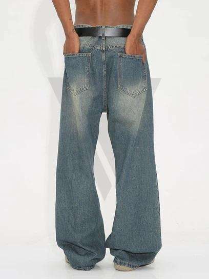 Men's Summer Style Sky Blue Baggy Jeans Lightweight Mid Waist Light Wash Custom Logo Casual Breathable Streetwear Wholesale