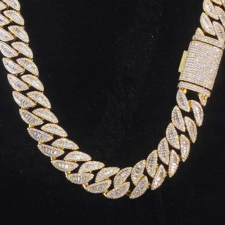 Unisex 20mm Width Custom Gold-Plated Tibetan Silver Necklace Hip Hop Style Cuban Link Chain Princess-Cut Ruby Accents Gift