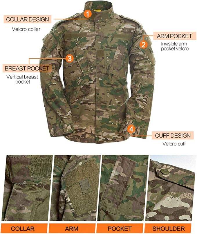 Men's 2PC Tactical ACU Satin Woven Embossed Jacket and Pants Fleece Canvas Velvet Jersey Material for Hunting Uniform Suit