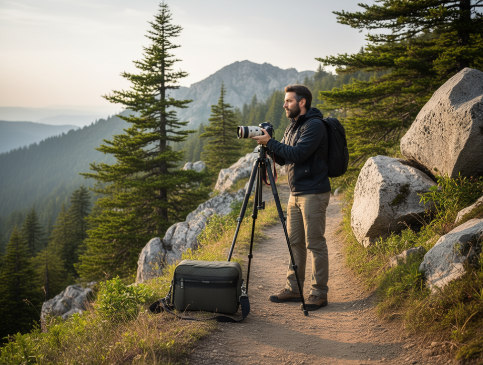 Men's 3-In-1 Camera Bag Microfiber Synthetic Leather Zipper Closure Simple Style LHT-13022