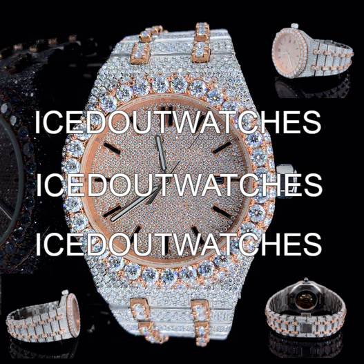 Men's 40mm Round Automatic Moissanite Watch in 14K Rose Gold with VVS Color Diamond Watch