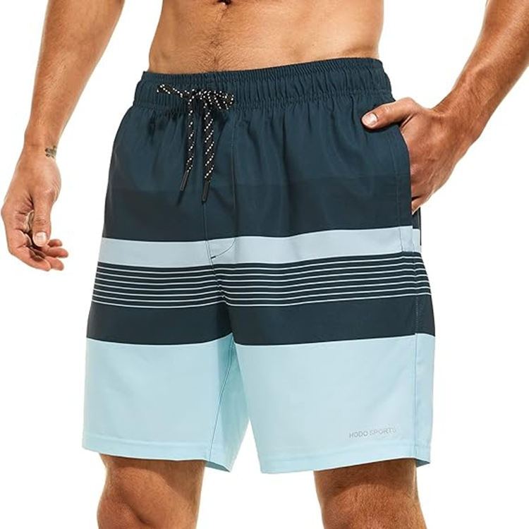 Men's 5 Inch Swim Shorts Double Layer Beach Board Shorts Casual Digital Printing Woven Knitting Fabric Drawstring Lightweight