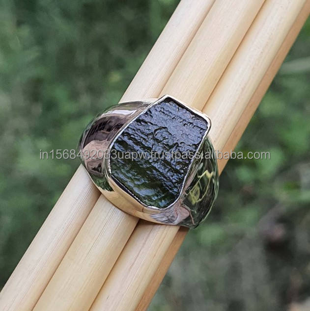 Product name:Natural Raw Moldavite Sterling Silver Men Women Ring