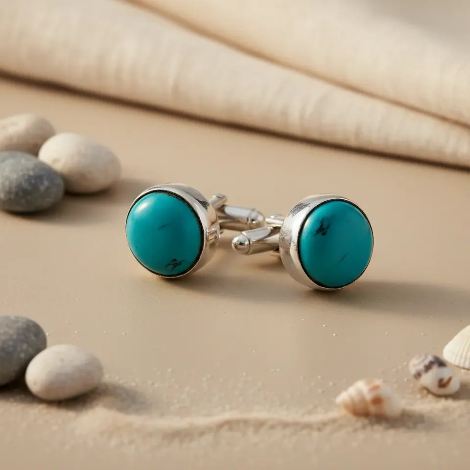 Men's 925 Sterling Silver Turquoise Cufflinks Fashion Jewelry Gift Stylish Tie Clips