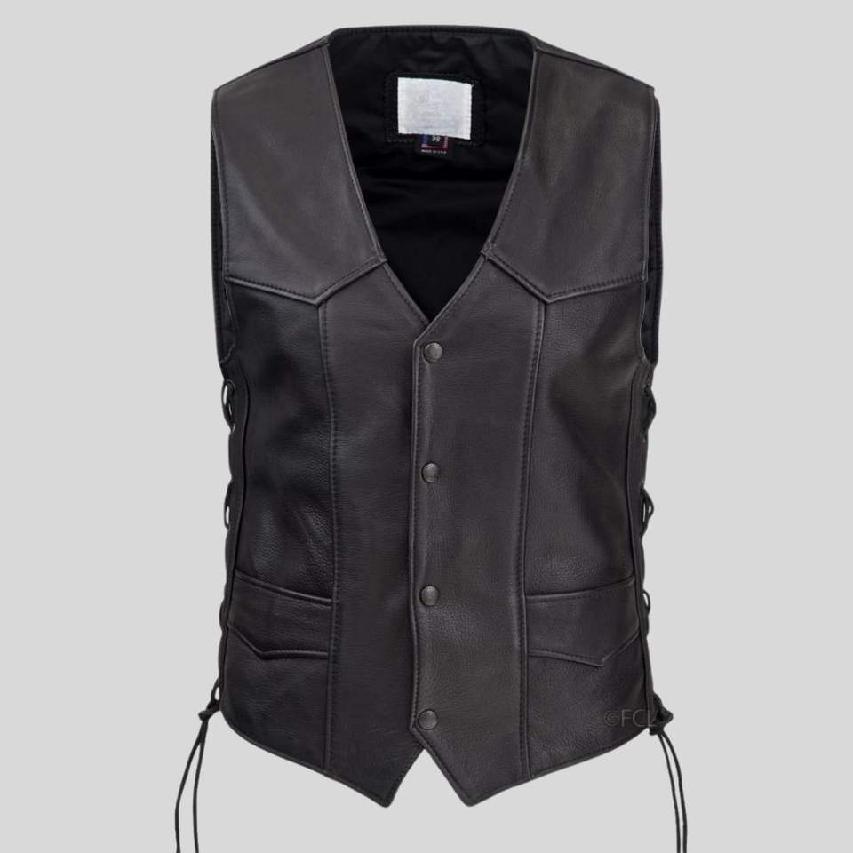 Men's All-Leather Reversible Biker Vest with Zipper Closure Breathable High Street Style Pockets Autumn Custom OEM Service