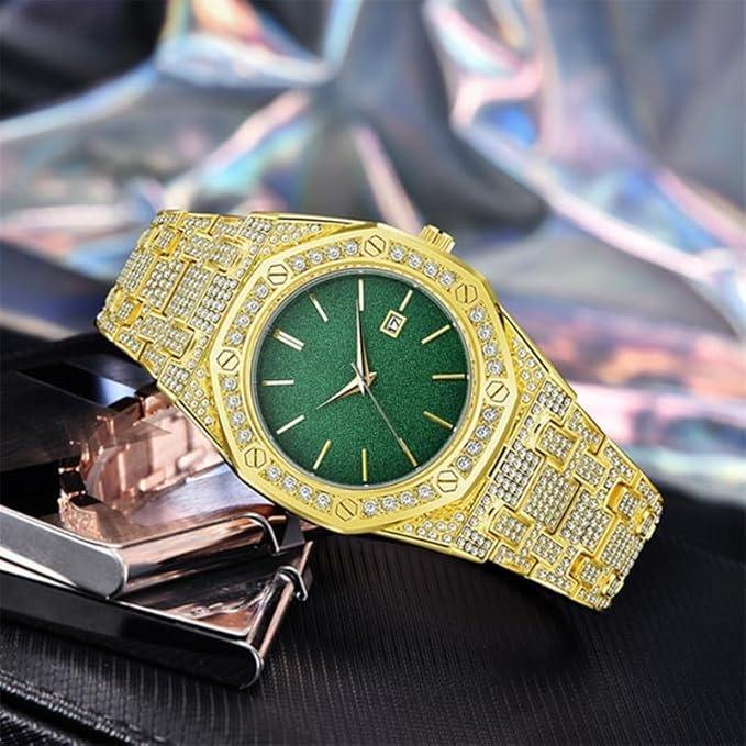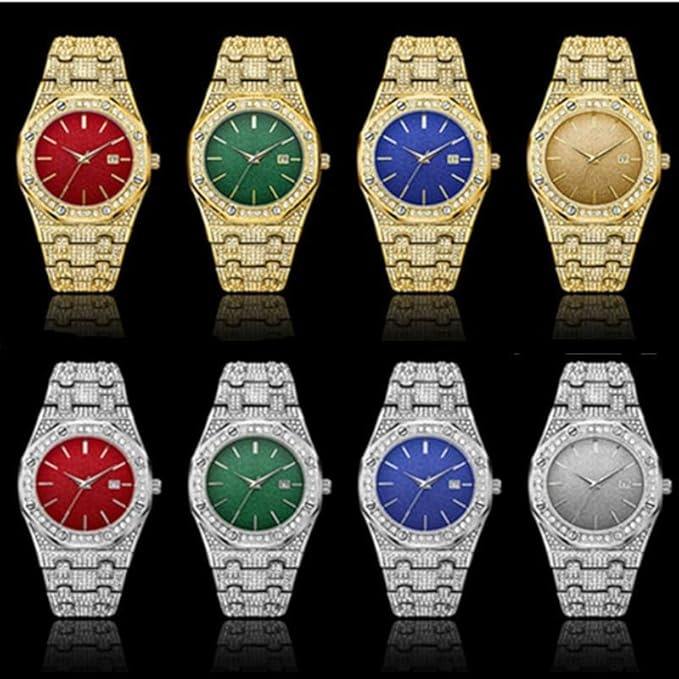 Mens Stainless Steel Analog Watch Full Diamond Plated Iced-Out Bling Timepiece with Quartz Movement 41mm Case Diameter