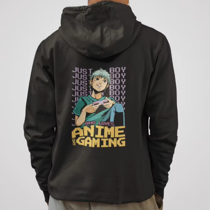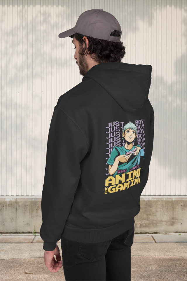 Men's Anime Gamer Black Printed Hoodie 100% Cotton 300 GSM Combed Bio-washed Pre-shrunk Unisex Derby Waist Casual Winter Style