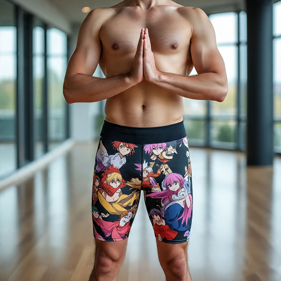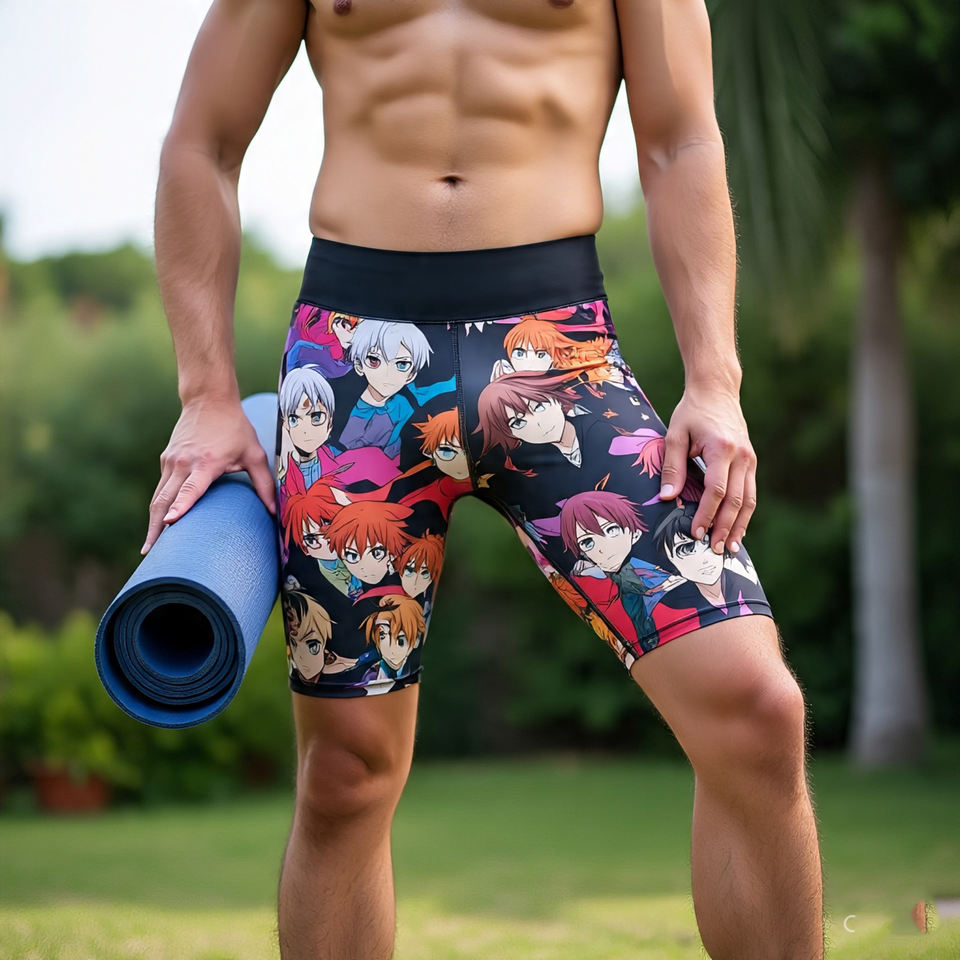 Men's Anime Sublimation Compression Shorts 100% Polyester Workout Printed Shorts Mens Athletic Sublimation Yoga Shorts Men