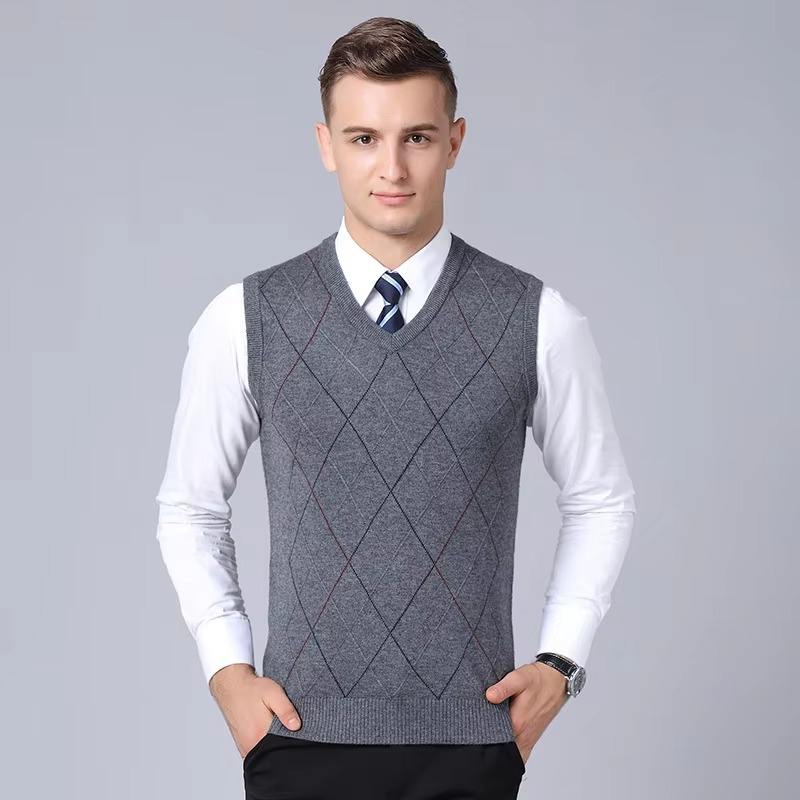 Men's Argyle Vest Sweater Cotton Blend V-Neck Sleeveless Pullover Sweater