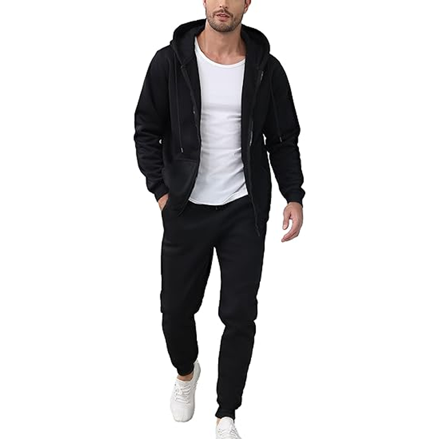 Men's Athletic 2-Piece Set Solid Print Hoodie Casual Tracksuit Full Zip Long Sleeve Sweatsuit for Winter Breathable Jogging