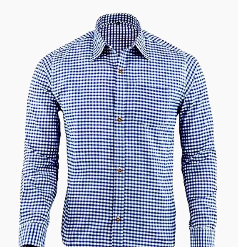 Men’s Authentic Blue Bavarian Oktoberfest Trachten Shirt Soft Cotton Long Sleeve S to 4XL