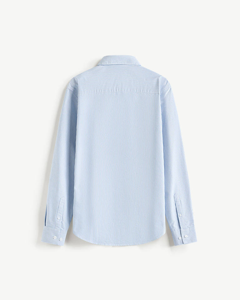 Men's Autumn Breathable Long-Sleeve Striped Oxford Shirt Fitted Casual Versatile Tops by Routine Vietnam Polyester/Cotton