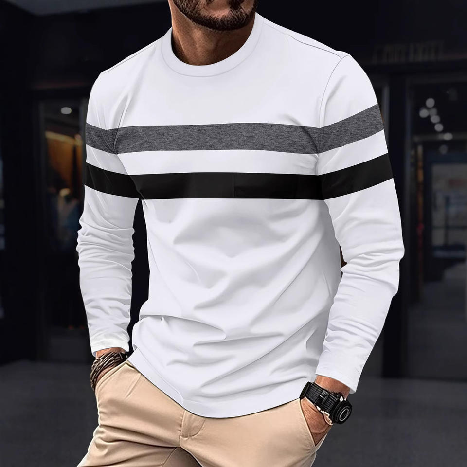 Men's Autumn and Winter Round Neck Long Sleeve Color Matching Bottoming Shirt Pullover Thin Long Sleeve T-shirt Men