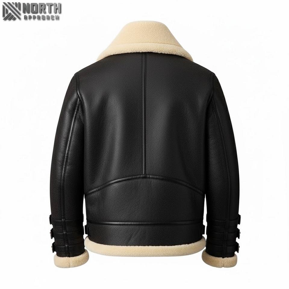 Men's Aviator Brown Shearling Leather Jacket Coat Double Collar Flight Jacket With Garment Dyed Technics Bomber Jacket