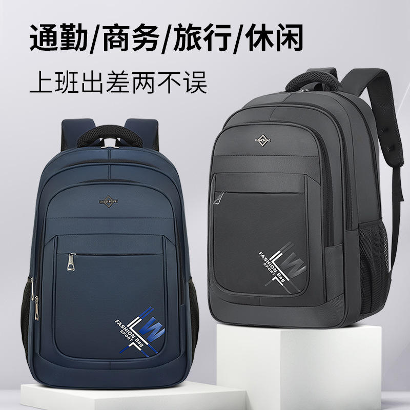 Men's Backpack Large Capacity 20-35L Interior Compartment Business Travel Bag Soft Handle Solid Color Blue Gray Black