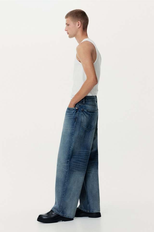 Men's Baggy Rigid Cotton Denim Blue Trouser Relaxed Jeans Premium Quality Rounded Leg Ankle Stack Baggy Pants @Wholesale Price