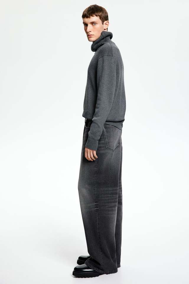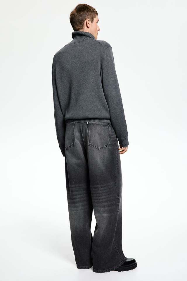 Men's Baggy Rigid Cotton Denim Dark Grey Trouser Relaxed Jeans High Quality Rounded Leg Ankle Stack Baggy Pants @Wholesale Price