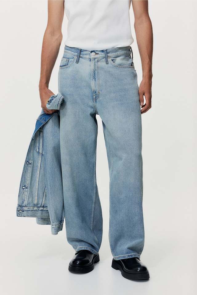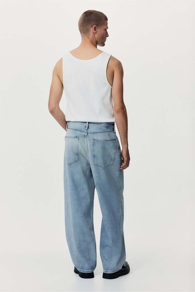 Men's Baggy Rigid Cotton Denim Blue Trouser Relaxed Jeans Premium Quality Rounded Leg Ankle Stack Baggy Pants @Wholesale Price